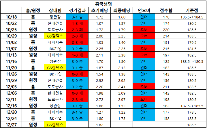 GS는 홈에서 흥국을 잡은적이 있어서 아마 정배를 받은듯한데 어렵군요 ㅎㅎ